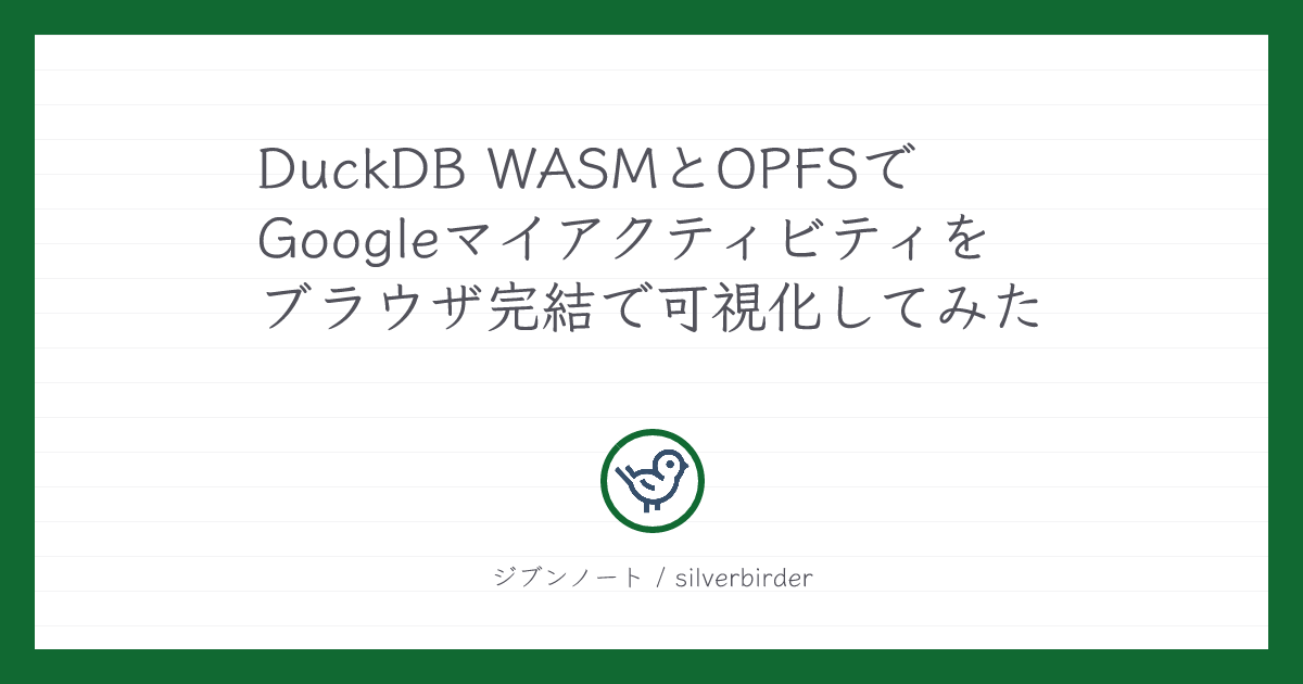 DuckDB WASMとOrigin Private File System (OPFS) を組み合わせ、Google マイアクティビティの履歴をブラウザ内に閉じたまま扱えるようにしたときの設計と学びを整理しました。